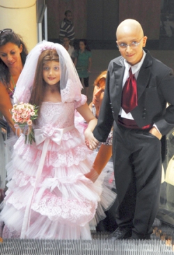 حققت عائلة طفلة في الثامنة من عمرها مصابة بمرض السرطان رغبتها بعقد قرانها على فتى مريض بالمرض نفسه عمره 12 عاما واقامت لها حفل زواج كبير. ,وحلمت "الطفلة خلود ان تكون "عروسا" تزف الى كريم الذي كانت التقته في المستشفى فكان لها ما ارادت رغم ان الموعد الاول لحفل الزواج تأجل لاشتداد المرض عليها . ودخلت العروس قاعة الزفاف على انغام الزفة وسط دموع المدعوين الذي تجاوز عددهم المئة, وهي ترتدي فستان الزفاف الذي صممه المصمم العالمي زهير مراد . ووصلت خلود إلى مكان الاحتفال بسيارة مكشوفة وقطعت قالب الحلوى وسط زغاريد المدعوين, وتمنت لها والدتها الشفاء لتحتفل بعرسها الحقيقي.