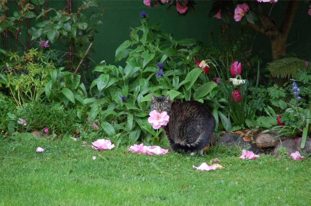 بالصور .. قط ينتقي أجمل الزهور ويهديها لصاحبته