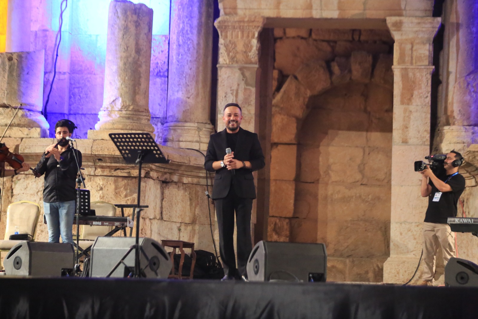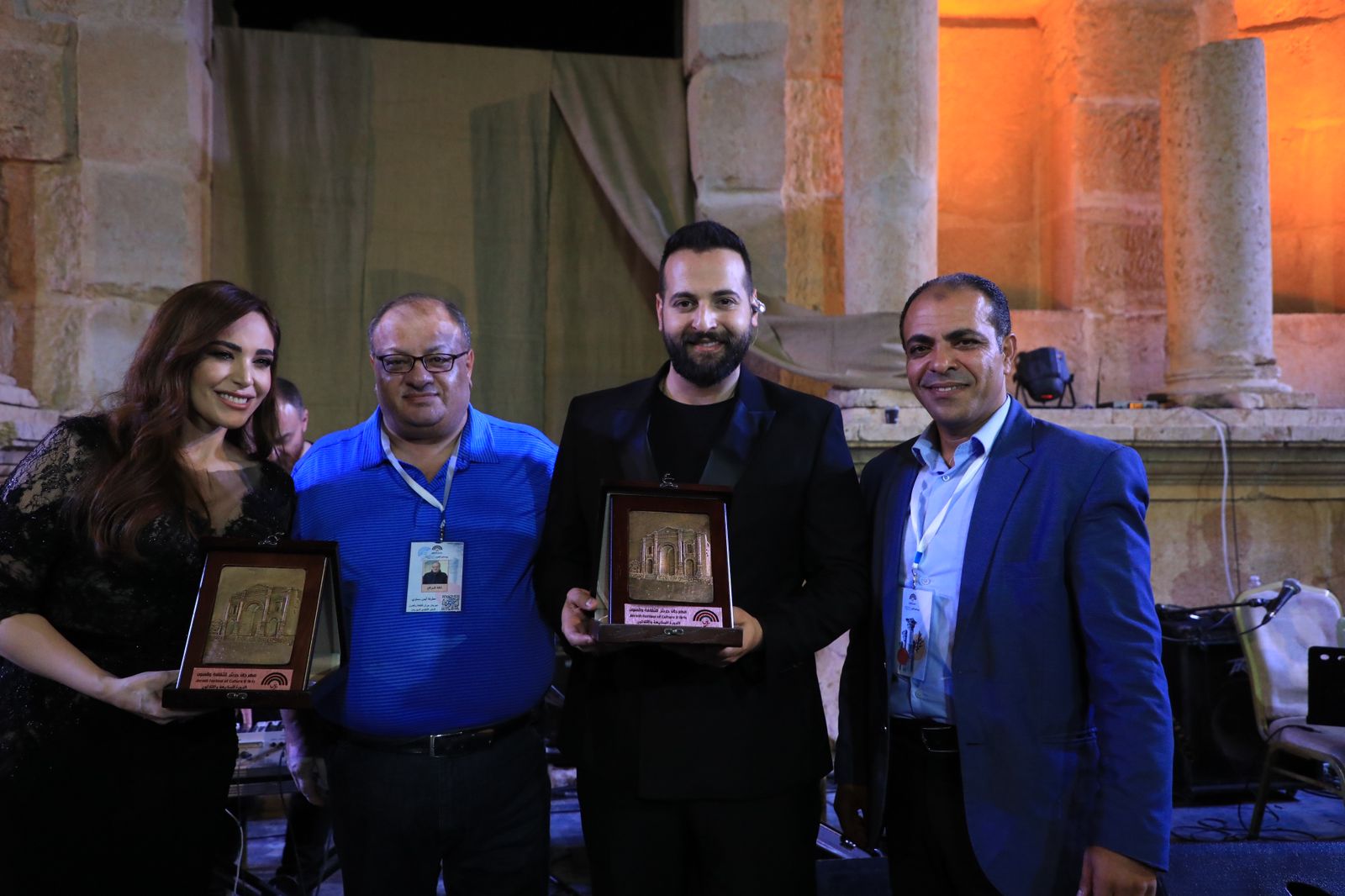 واختتم الحفل بتكريم ممثل إدارة مهرجان جرش ومدير مسرح الأدويون عطاالله الرواحنة للفنانين المشاركين على جهودهما في بث الفرح والحماس والأجواء الطربية والوطنية لجمهور مسرح الأوديون.