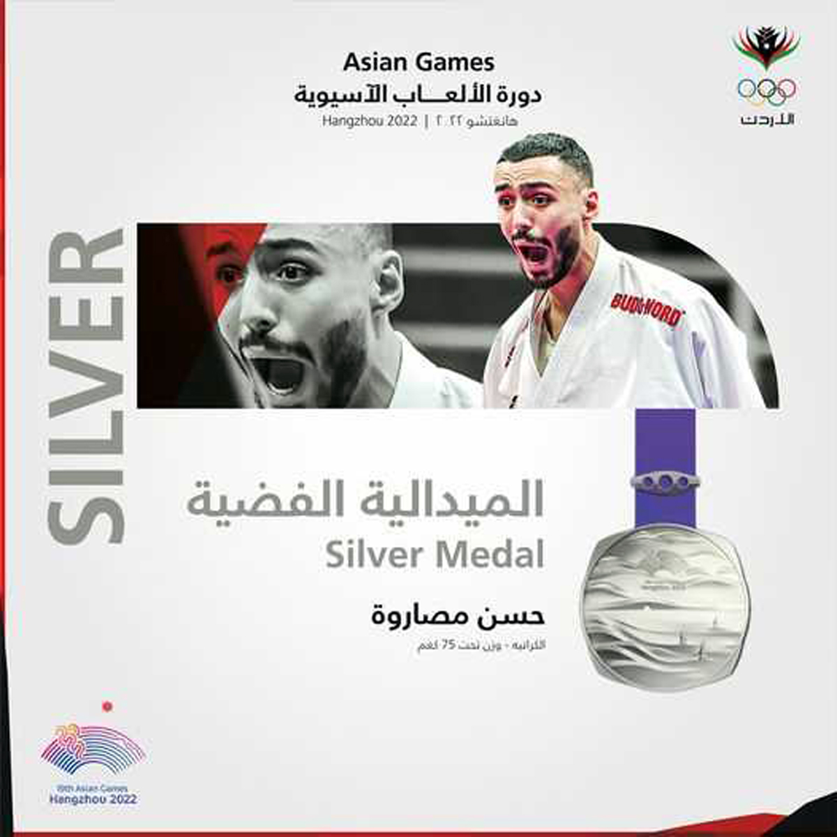 أحرز لاعب المنتخب الوطني للكراتيه حسن مصاروة، الميدالية الفضية، في منافسات وزن تحت 75 كغم، بدورة الألعاب الآسيوية المقامة حاليا في الصين.