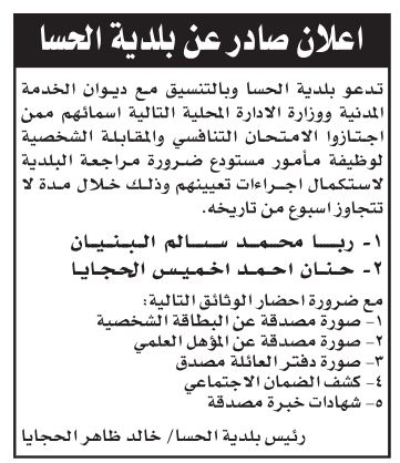وظائف شاغرة ومدعوون لمقابلات شـخصية .. أسماء
