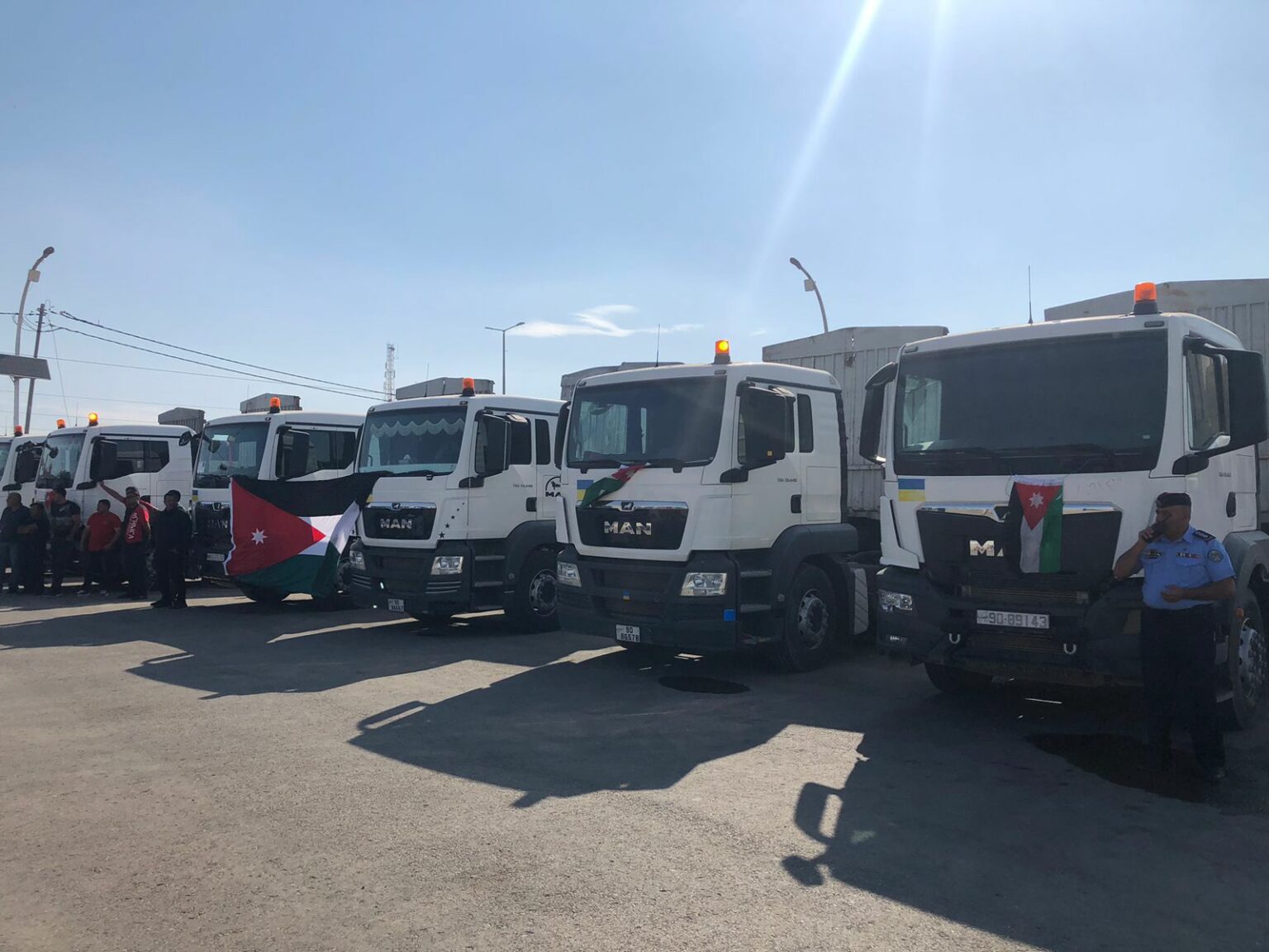 بتوجيهات من جلالة الملك عبدالله الثاني وتنفيذا لقرار مجلس الوزراء، سيّر الأردن 6 شاحنات من الأدوية والمعدات والاحتياجات الطبية إلى الأهل في فلسطين عبرت جسر الملك حسين بعد ظهر اليوم الثلاثاء.