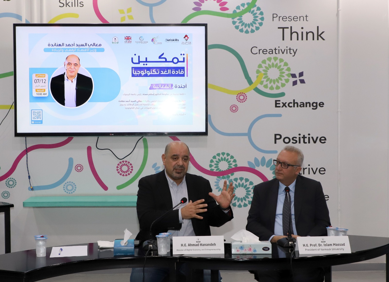 وعرض هناندة لجهود الوزارة فيما يخص طلبة الجامعات، والمتمثل بتطوير كفاءاتهم على صعيد المهارات الرقمية، بهدف تعزيز جاهزية الطلبة على مقاعد الدارسة والخريجين لمتطلبات سوق العمل في قطاعي تكنولوجيا المعلومات والاتصالات، مؤكدا أن مستقبل العالم رقمي وإنسان المستقبل رقمي أيضا.