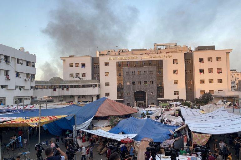 وذكر أنه عندما زار مستشفى “الشفاء” بمدينة غزة رأى آلاف الأشخاص قد لجأوا إليه، وأنه لم يستطع دخول غرفة العمليات بسبب كثافة النازحين.