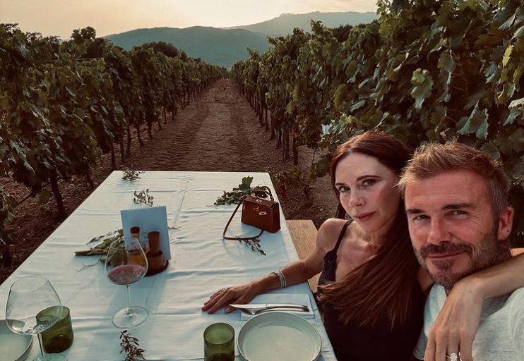 وفي التفاصيل، شارك ديفيد بيكهام متابعيه عبر حسابه في "إنستغرام" صورة رومانسية تجمعه بزوجته وقت غروب الشمس، إذ جلسا وسط كروم العنب، فيما وضعت فيكتوريا ذراعها حول عنق زوجها، حيث ظهرا وكأنهما في حالة من السعادة والسكينة.