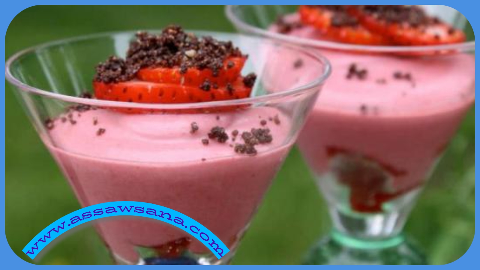 -ضع الوعاء في الثلاجة. عبئ موس الفراولة في كؤوس زجاجية دائرية.