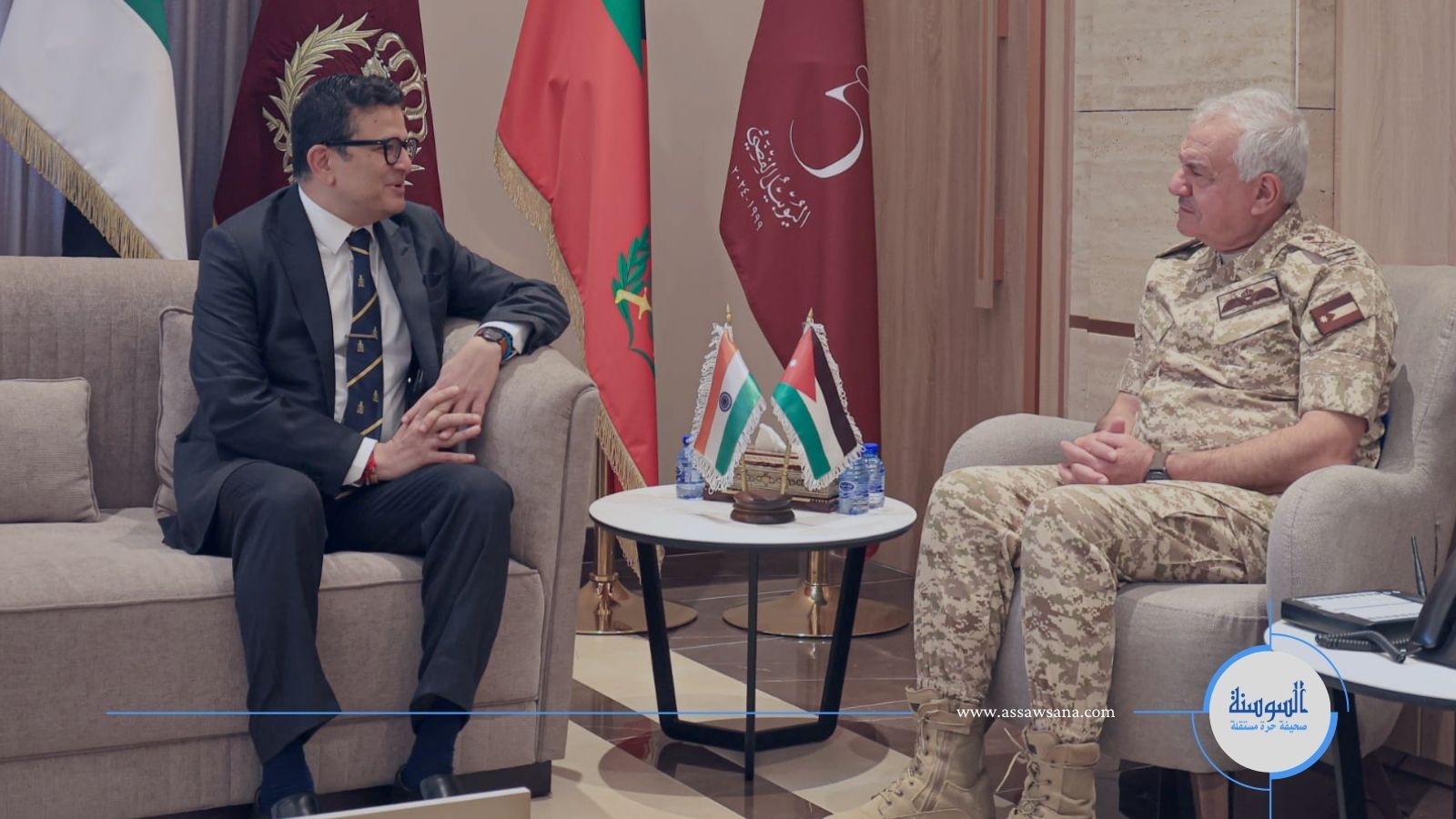 استقبل رئيس هيئة الأركان المشتركة اللواء الركن يوسف أحمد الحنيطي، الأربعاء، في مكتبه بالقيادة العامة السفير الهندي في عمّان مانيش تشوهان.