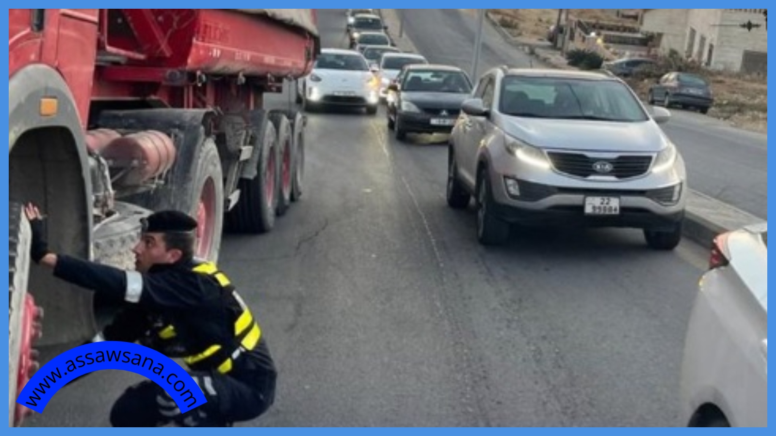 وأوضحت المديرية أن فرق السير تعمل في الموقع لمعالجة الأثر المروري الناتج عن الحادث حتى يتم رفع الشاحنة وإعادة فتح المسرب المتعطل .