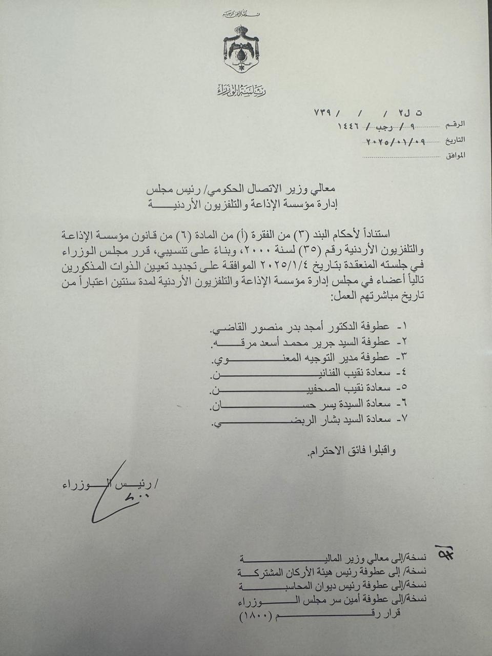 قرر مجلس الوزراء، تعيين مجلس ادارة مؤسسة الاذاعة والتفزيون الاردني منذ نحو اسبوع، ولم يعلن الخبر رسميا بعد.