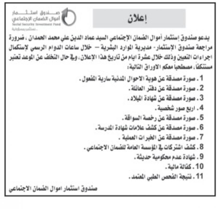 الحمدان مطلوب لصندوق استثمار أموال الضمان الاجتماعي