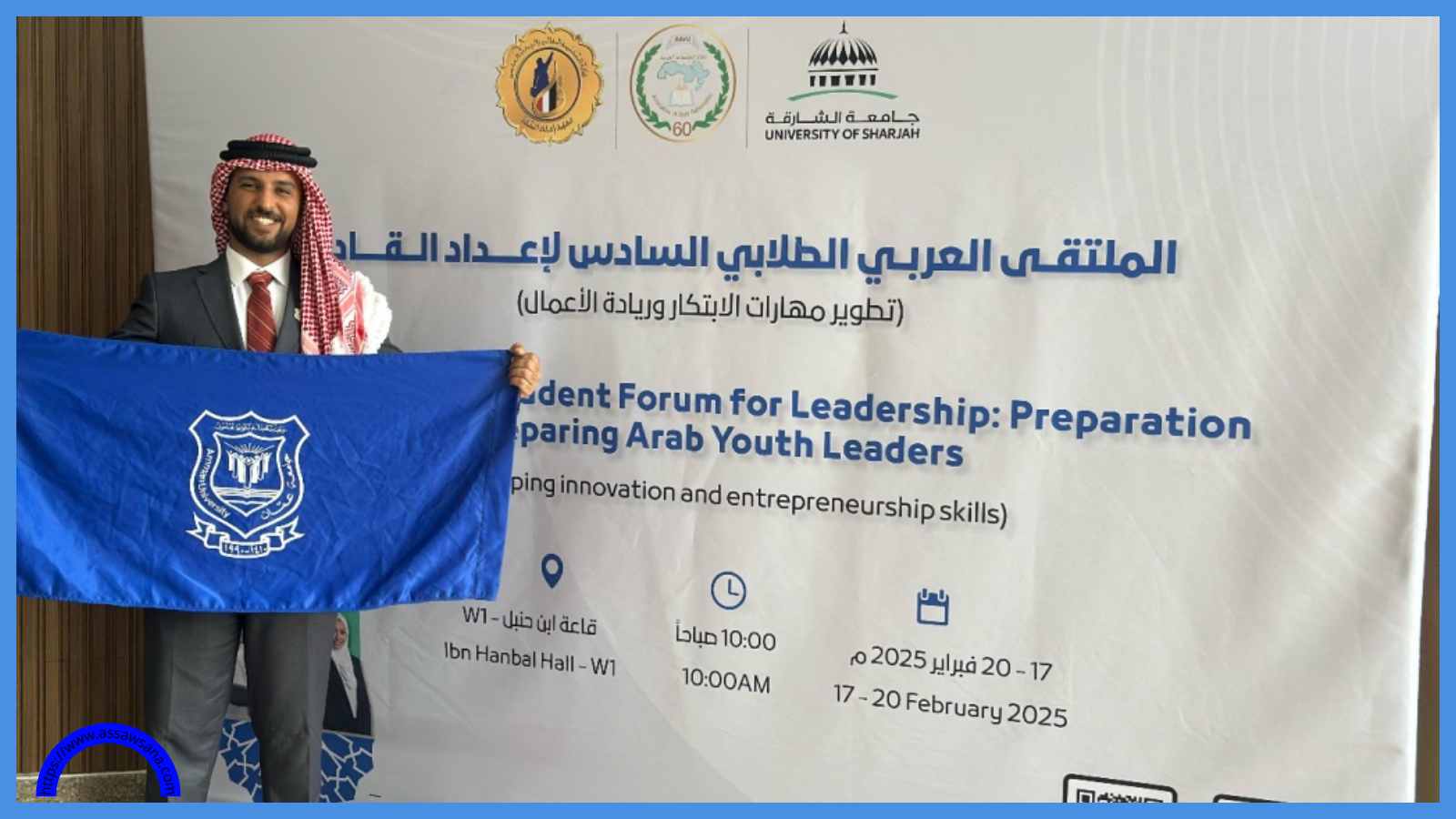 حيث شارك الطالب معاذ وائل العلوان من كلية الأعمال بجامعة عمان الأهلية بتميّز في فعاليات هذا البرنامج التدريبي الذي اشتمل على عدة جلسات ومحاضرات لتعزيز مهارات القيادة اللازمة لبناء الشخصية وريادة الاعمال في عصر الذكاء الاصطناعي والتخطيط الاستراتيجي وبناء فريق العمل.