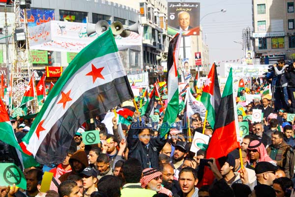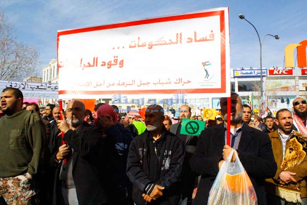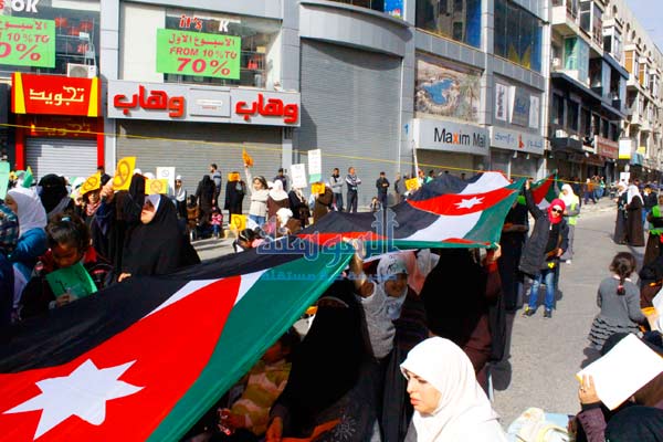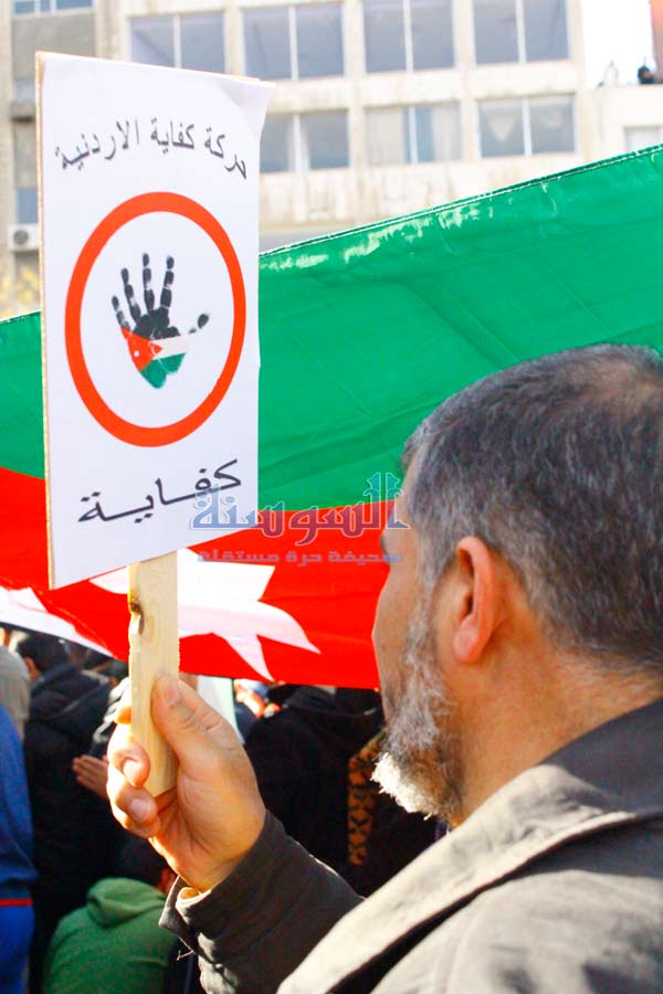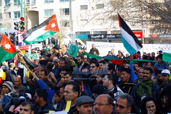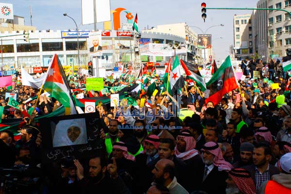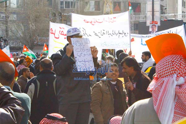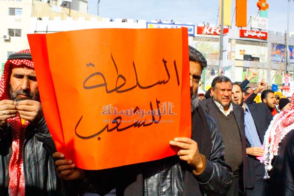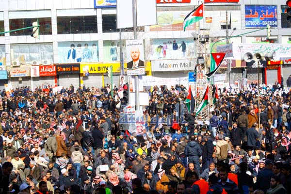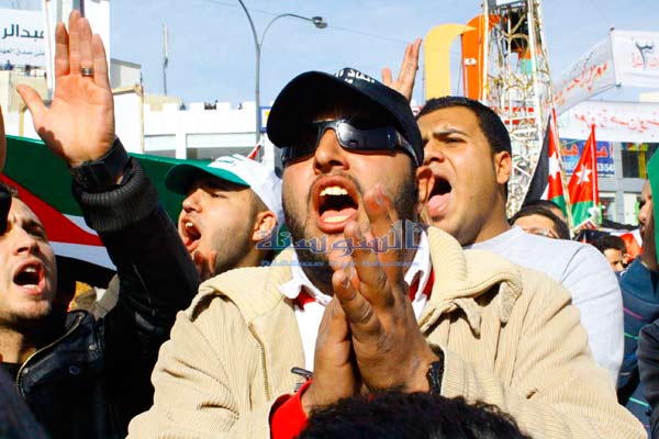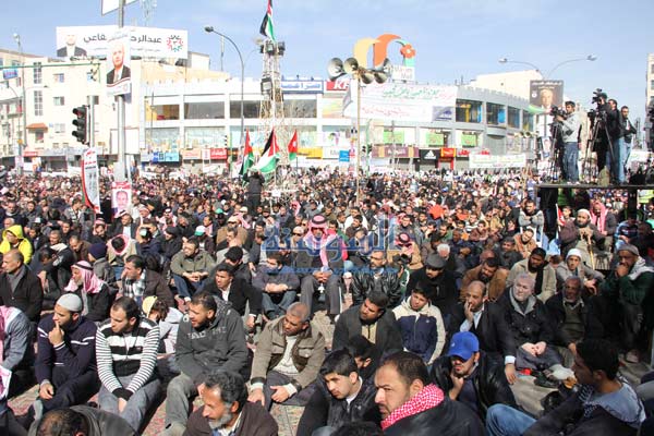 وعقب انتهاء الصلاة التي أقميت عند "دوار فراس" في منطقة جبل الحسين بالعاصمة، عمان، بدأ المتظاهرون بالهتاف للمطالبة بإصلاح النظام، وهو ما رفضه العديد من المشاركين، مطالبين برفع سقف الهتاف.