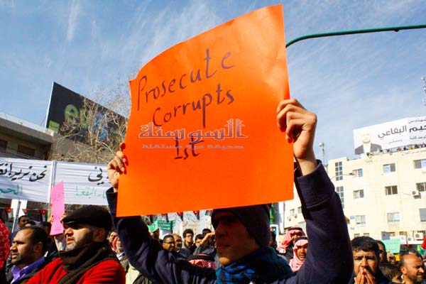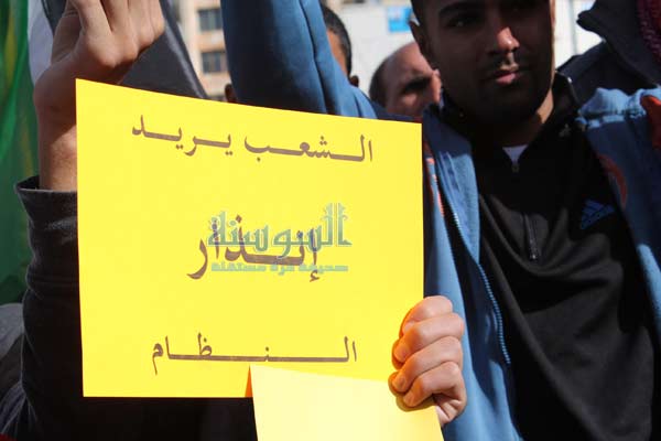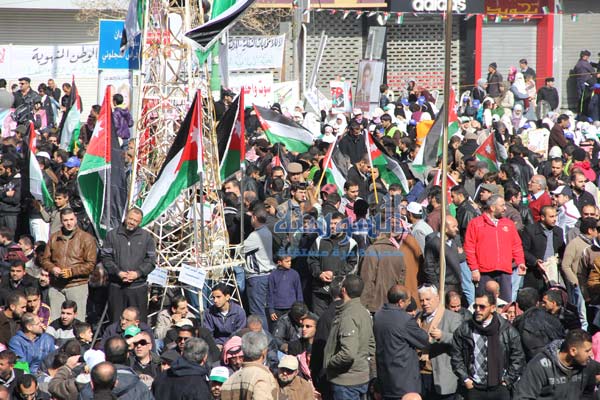 ومن بين هتافات المشاركين: "لا اله الا الله والمصلح حبيب الله والفاسد عدو الله"، و"الفوسفات راحت فين والبوتاس راحت فين"، و"لوح بايدك لوح احنا احرار مش عبيدك"، و"لا ولاء ولا انتماء الا لرب السماء".