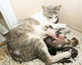 قطة تلد في احدى خزائن بلدية شيحان دون ملاحظة الموظفين لمدة طويلة !
