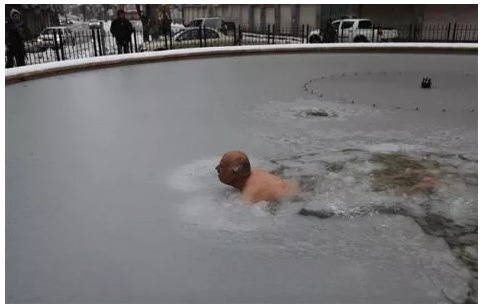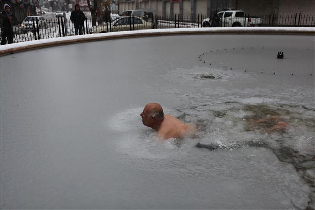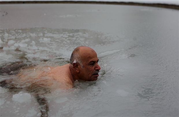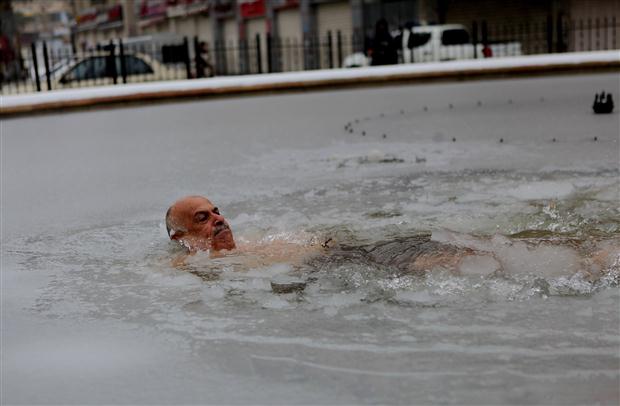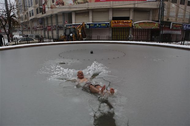 فيديو وصور : خليلي يسبح في الثلج تضامنا مع سوريا