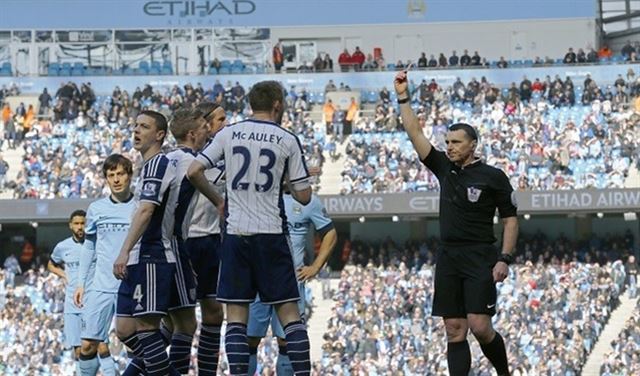 السوسنة - شهد الدوري الإنكليزي فضيحة تحكيمية جديدة بعد أن أشهر الحكم نيل سواربريك البطاقة الحمراء في وجه لاعب آخر غير الذي ارتكب المخالفة، في مباراة مانشستر سيتي ووست بروميتش.