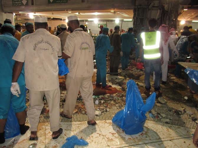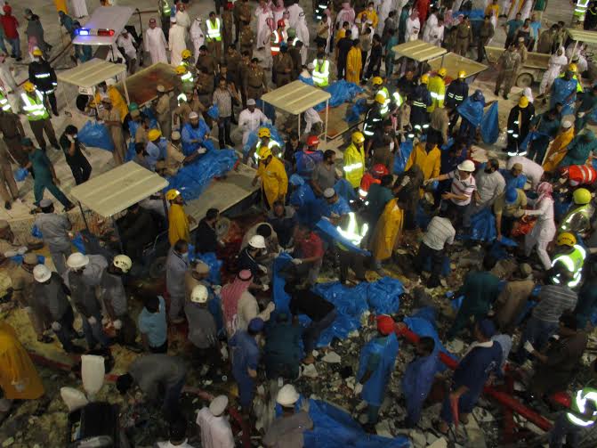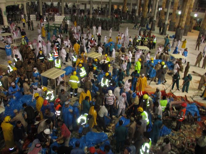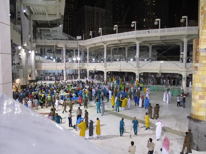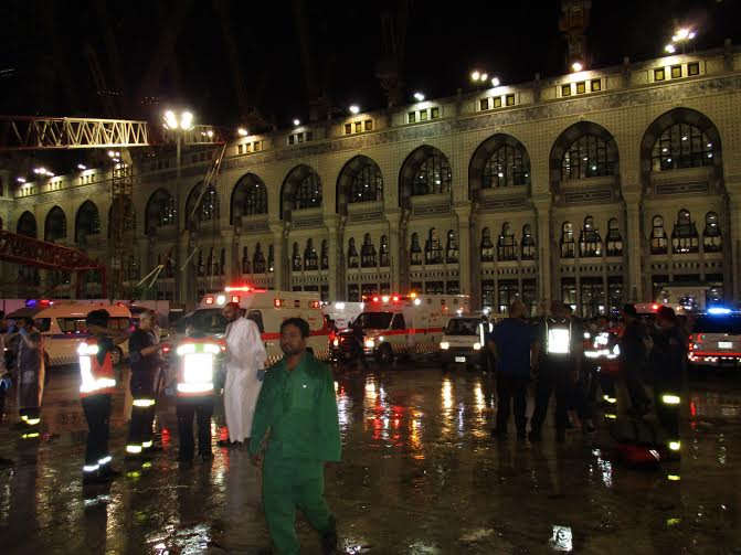 وكانت الأجهزة الصحية في مكة قد أعلنت حالة الاستنفار من الدرجة القصوى وأعلنت الحالة (حمراء) لكل مستشفياتها، بينما رفعت أجهزة الدفاع المدني والأجهزة الأمنية للحالة القصوى عقب سقوط رافعة داخل الحرم المكي الشريف وخلّفت قتلى ومصابين.