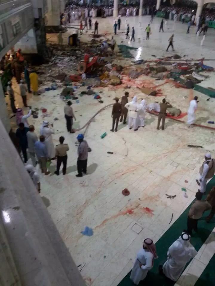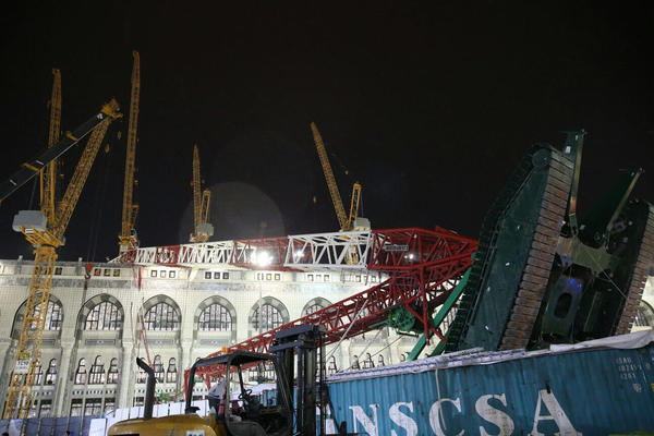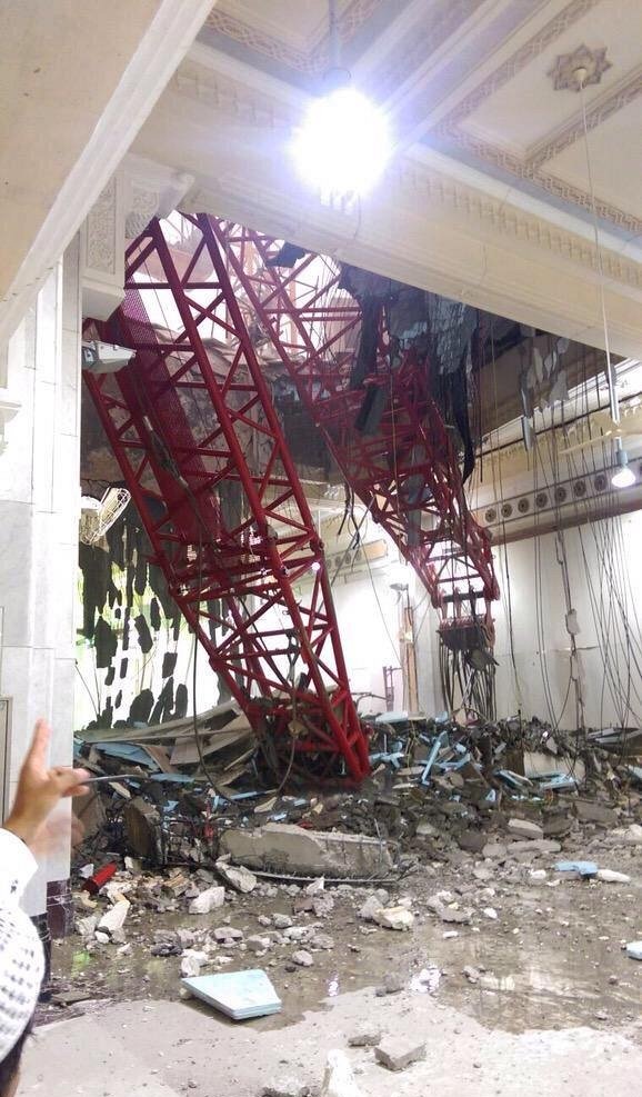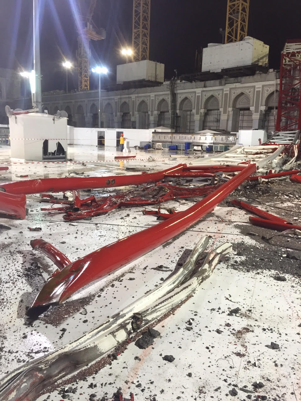 وتعد الرافعة من أكبر الرافعات بالشرق الأوسط، سقطت خلال هطول الأمطار وهبوب الرياح على العاصمة المقدسة قبيل مغرب الجمعة حيث سقط جزء منها على صحن الطواف المؤقت الخارجي وعلى سطح الدور الثالث للمسعى، ما تسبب في تسجيل الوفيات والإصابات بين زوار المسجد الحرام.
