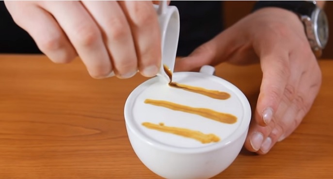ويتم الرسم على القهوة بإضافة الحليب أو الكريمة المخفوقة جيداً وهذا الفيديو يوضح لك الأمر بالتفصيل.