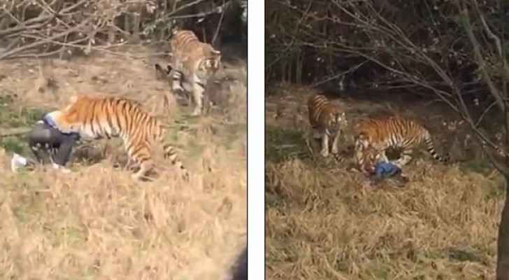 بالفيديو .. نمور تفترس رجلا أمام عائلته في الصين +18