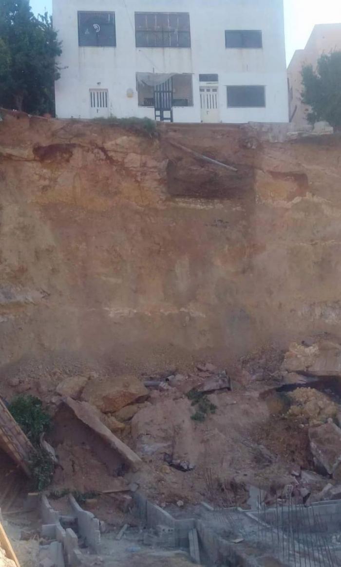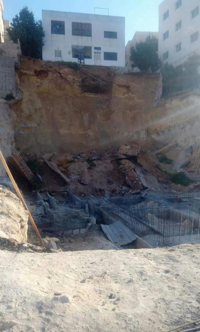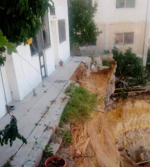 صويلح: إخلاء بناية من السكان بسبب إنهيار الجدار الإستنادي - صور
