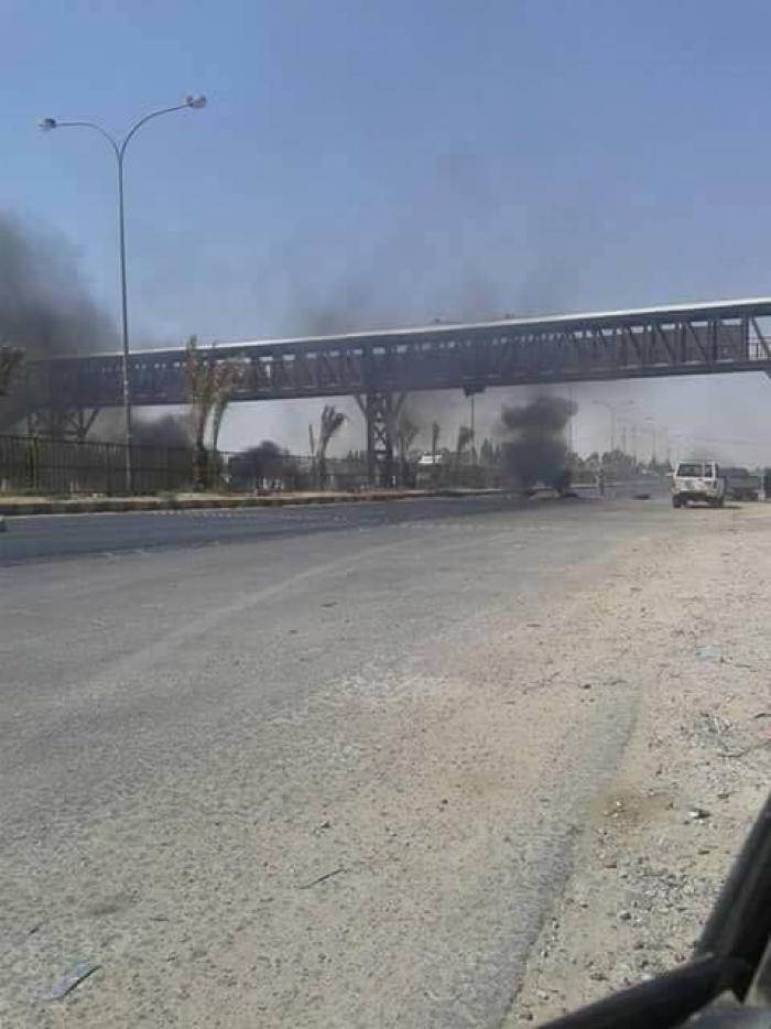 إغلاق الصحراوي في الحسينية بالاطارات المشتعلة .. والامن يتدخل - صور