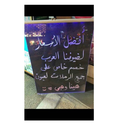 السوسنة - تداول رواد مواقع التواصل الإجتماعي صورة مأخوذة في تركيا، للافتة مكتوب عليها: "فصل الأسعار لضيوفنا العرب... خصم خاص على جميع الرحلات لعيون هيفاء وهبي".