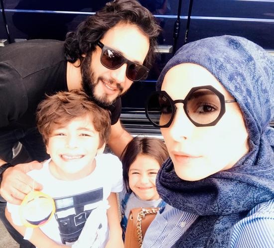 أول ظهور لأمل حجازي مع زوجها وأولادها بعد الحجاب .. شاهد