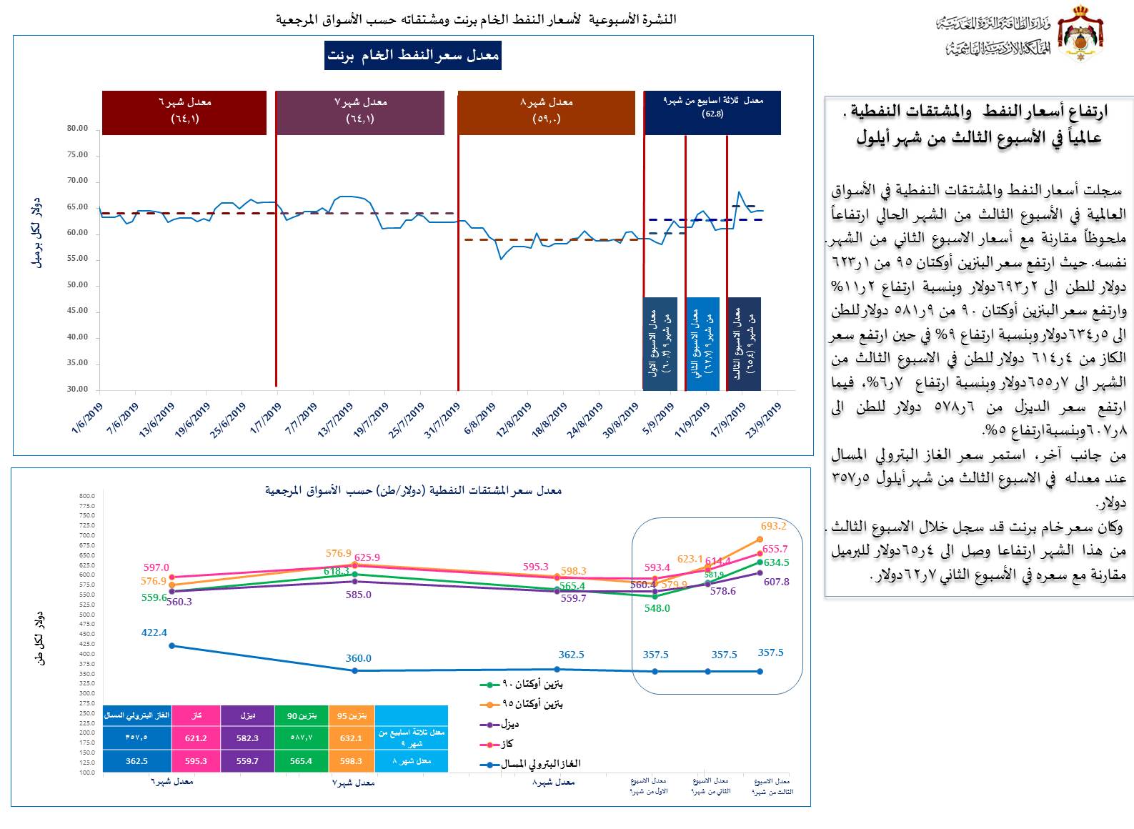 من جانب آخر، استمر سعر الغاز البترولي المسال عند معدله في الاسبوع الثالث من شهر أيلول 5ر357 دولار.