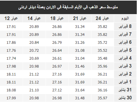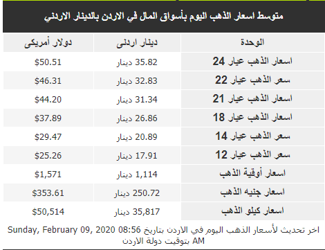 السوسنة - أظهر التقرير الدوري لأسعار الذهب في الأردن استقرارا بأسعاره، حيث بلغ سعر المعدم عيار 21 الأحد، 31.34 دينار.