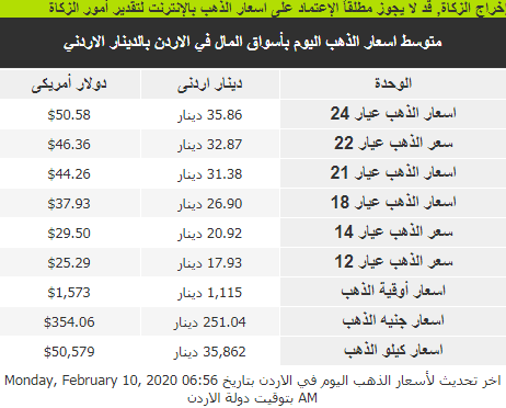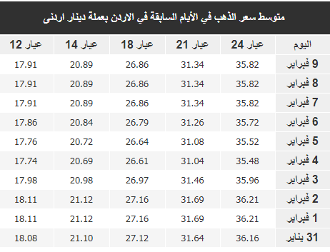 أسعار الذهب في الأردن