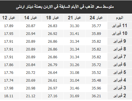 السوسنة - أظهر التقرير الدوري لأسعار الذهب في الأردن انخفاضا طفيفا بأسعاره، حيث بلغ سعر المعدم عيار 21 لليوم 31.28 دينار.
