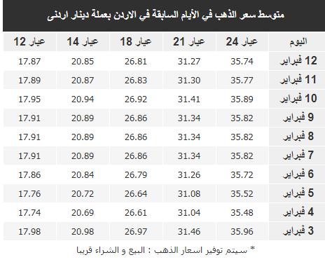 السوسنة - أظهر التقرير الدوري لأسعار الذهب في الأردن رتفاعا طفيفا بأسعاره، حيث بلغ سعر المعدم عيار 21 لليوم 31.41 دينار.