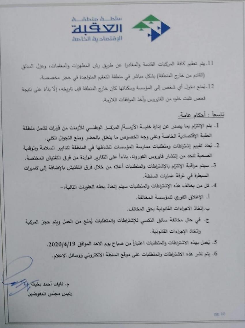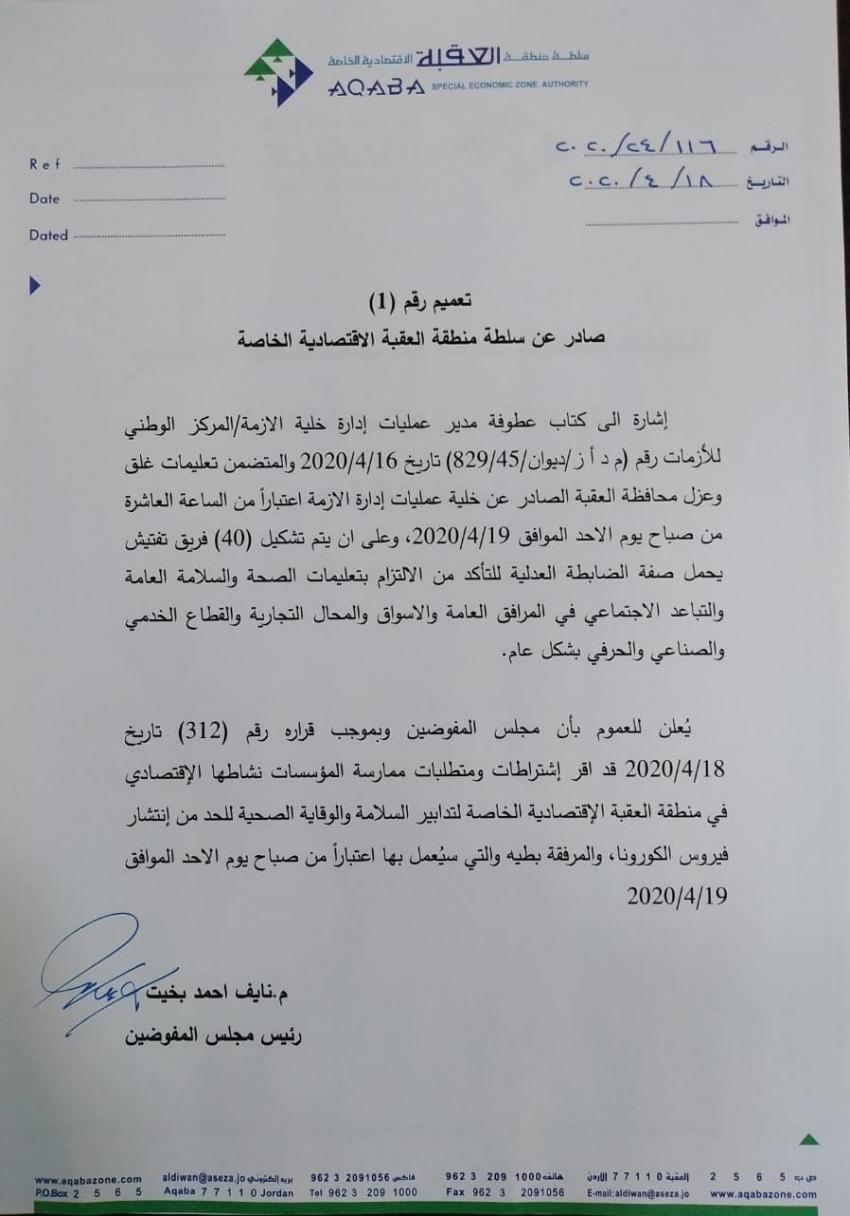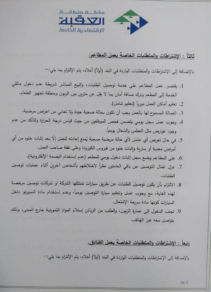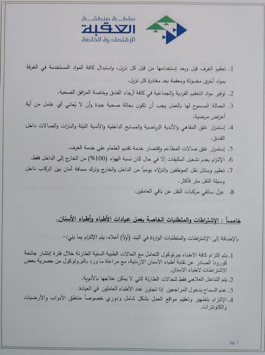 السماح للتكسي والصالونات والمطاعم والعيادات بالعمل في العقبة