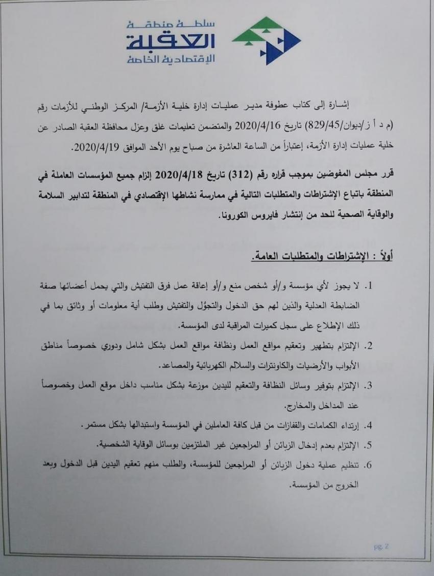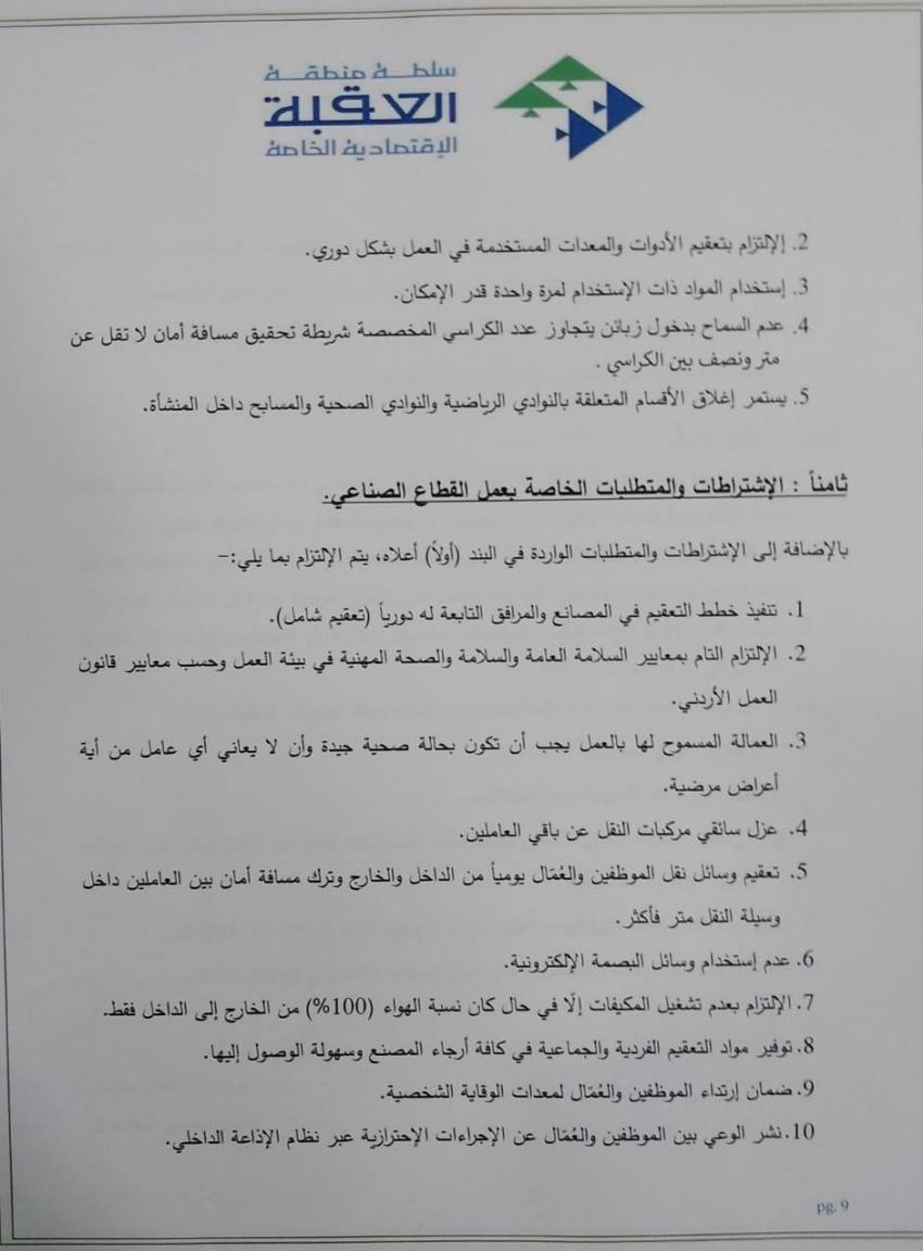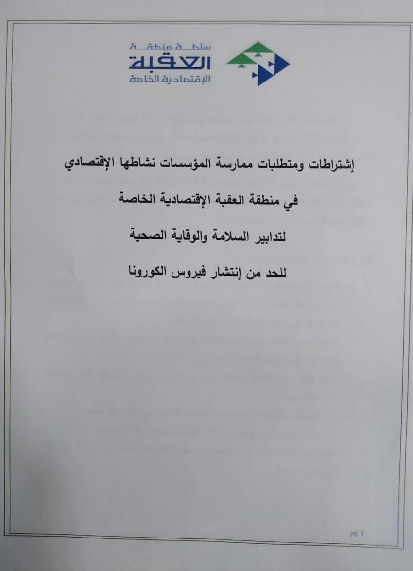 السوسنة - نشرت سلطة منطقة العقبة الاقتصادية الخاصة، اشتراطات ومتطلبات ممارسة المؤسسات نشاطها الاقتصادي في المناطق التابعة لها.