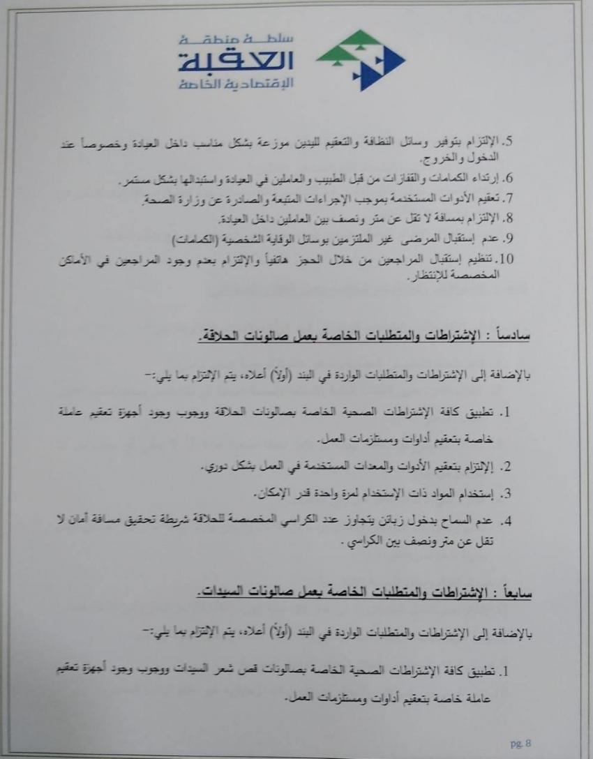 كما تم السماح لمكاتب تأجير السيارات ومراكز تدريب السواقة، والمطاعم وصالونات الحلاقة للرجال والسيدات، والقطاع الصناعي، وعيادات الأطباء وأطباء الأسنان.