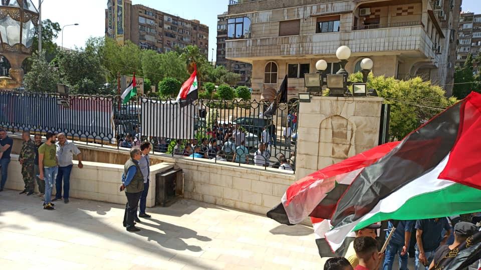 وتوجه موكب التشييع إلى مقبرة الشهداء في مخيم اليرموك للاجئين الفلسطينيين، جنوبي دمشق؛ لإجراء مراسم الدفن.