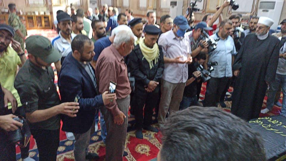 وامتلأ جامع الأكرم في منطقة المزة بدمشق بالمصلين، الذين اجتمعوا حول نعشه، بعد الحصول على إذن خاص لإقامة مراسم تشييعه، مع منع دمشق التجمعات جراء فيروس كورونا المستجد.