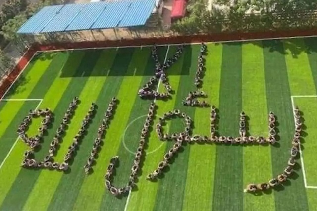 السوسنة - رفضا للإساءة الفرنسية للنبي محمد صلى الله عليه وسلم، شارك عشرات الطلاب المسيحيين مع زملاءهم المسلمين في رسم عبارة "إلا رسول الله" بأجسادهم في داخل ملعب بإحدى المدارس في محافظة الاسكندرية، حسب وسائل إعلام مصرية أمس الثلاثاء.