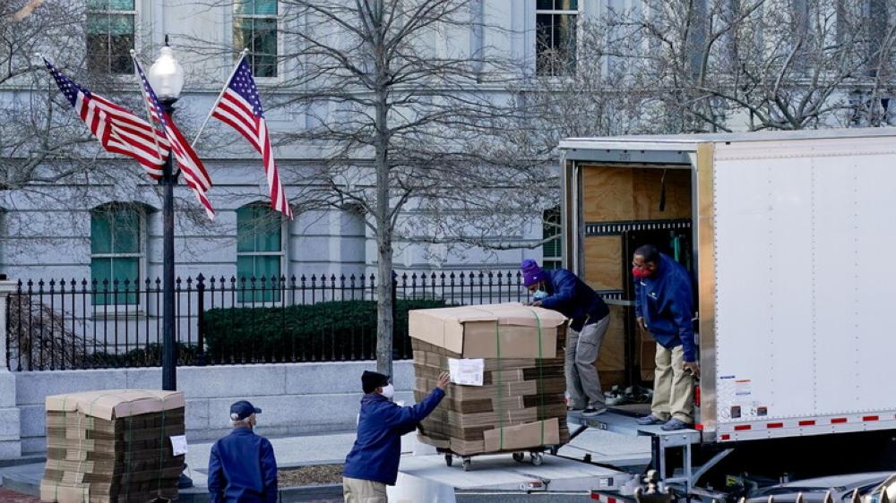 السوسنة - سلمت أكوام من الصناديق الكرتونية الفارغة إلى مبنى المكتب التنفيذي في البيت الأبيض لبدء حزم أمتعة الرئيس المنتهية ولايته دونالد ترامب ومسؤولي إدارته.