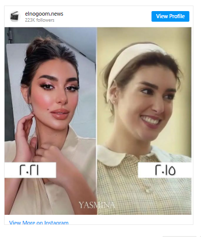 السوسنة : تناقل رواد مواقع التواصل الاجتماعي صورة مركبة للممثلة المصرية ياسمين صبري وظهرت فيها بشكلها الحالي وبشكلها قبل 6 سنوات، وتحديدا في احد المسلسلات التي شاركت فيها عام 2015.
