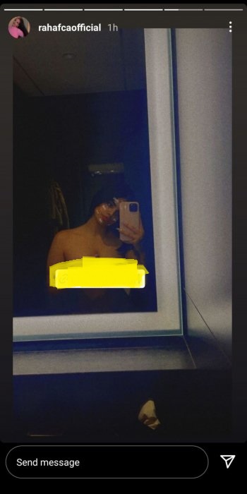 السوسنة - على خاصية الستوري في موقع انستغرام، نشرت رهف القنون صورة سيلفي لها من أمام المرآة، وظهرت فيها عارية تماماً دون ملابس، وتغطي صدرها بيدها، وتمسك هاتفها بيدها الأخرى، وسدلت شعرها على كتفها.