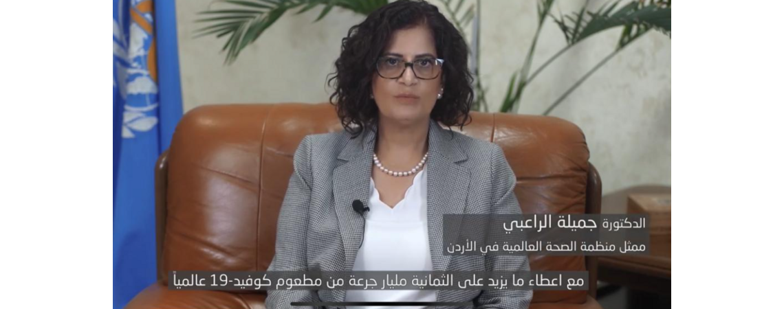 السوسنة : دعت ممثل منظمة الصحة العالمية في الأردن، الدكتورة جميلة الراعبي الجميع إلى تلقي مطعوم كوفيد-19. جاء ذلك من خلال رسالة مصورة بثها مكتب منظمة الصحة العالمية في الاردن من خلال حساباتهم على منصات التواصل الاجتماعي.