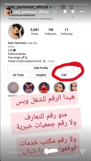 كما اكدتن رولا ان الرقم الذي وضعته ليس رقمها الخاص، ولا يمكن لأي احد التواصل معها والتعرف عليها من خلاله مطالبة من كل شخص يزعجها التوقف عن ذلك.