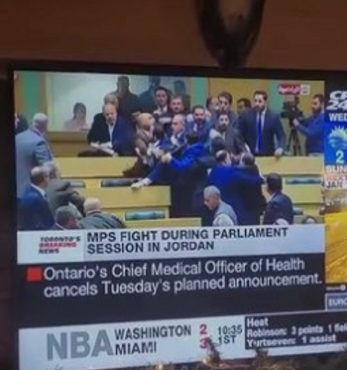 السوسنة - بثت احدى القنوات التلفزيونية الكندية، مقطعا مصورا، يظهر مشاجرة أعضاء مجلس النواب الأردني تحت القبة.