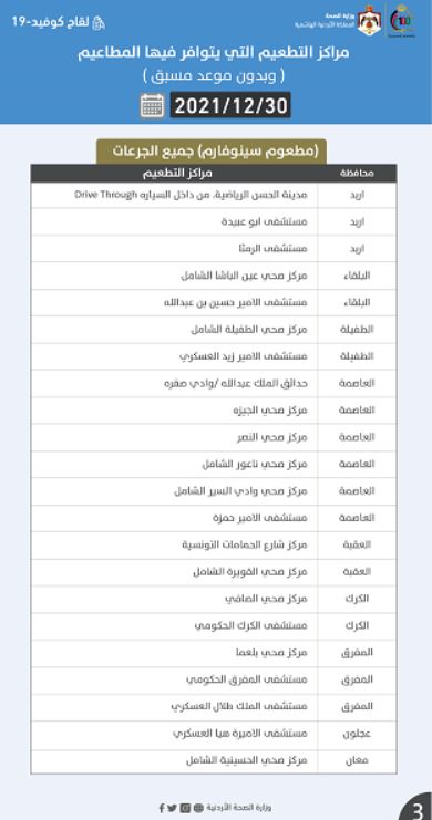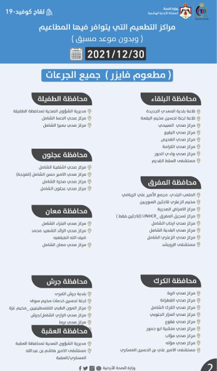 بالأسماء .. مراكز تطعيم كورونا ليوم الخميس