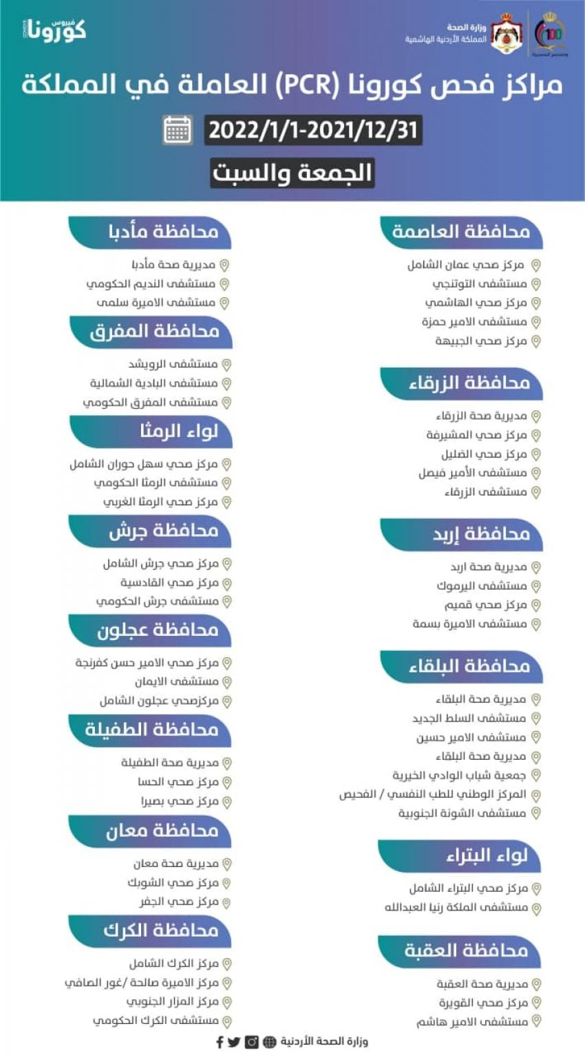 مراكز فحوصات كورونا ليومي الجمعة والسبت