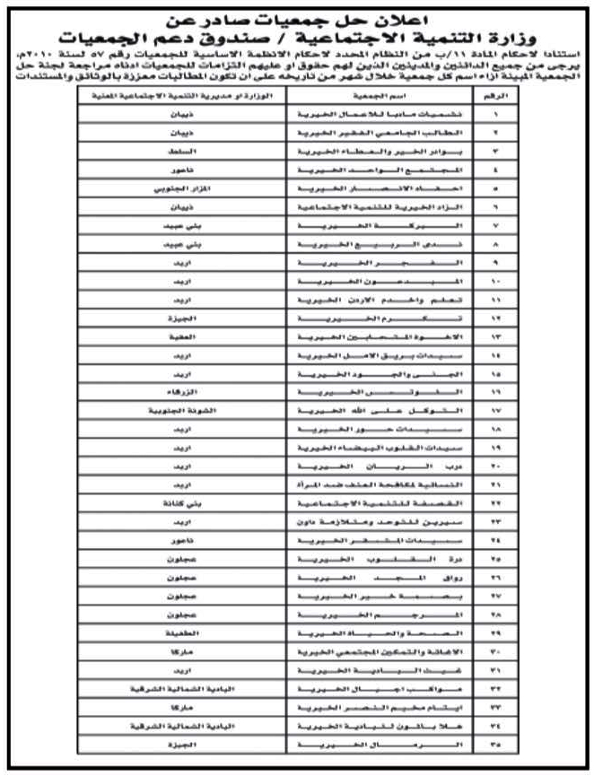 حل 35 جمعية في الأردن .. أسماء