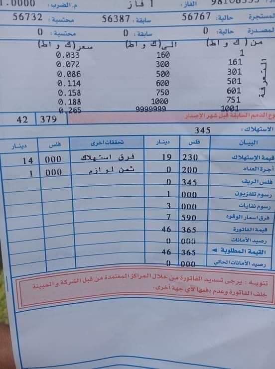 توضيح لكل المواطنين حول سعر فاتورة الكهرباء