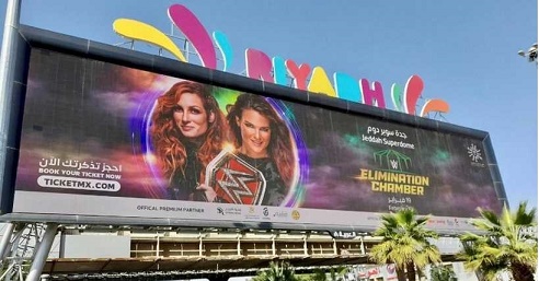 السوسنة - تقام منافسات بطولة "غرفة الاستبعاد" في "جدة دوم" يوم 19 فبراير الحالي، والذي تنضمه مؤسسة المصارعة العالمية الترفيهية، بالتعاون مع الهيئة العامة للترفيه بالمملكة العربية السعودية، وإحتفت "دبليو دبليو إي" (WWE) بظهور نجماتها على اللوحات الإعلانية الضخمة بشوارع المملكة العربية السعودية.